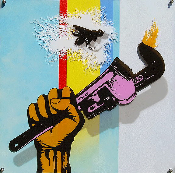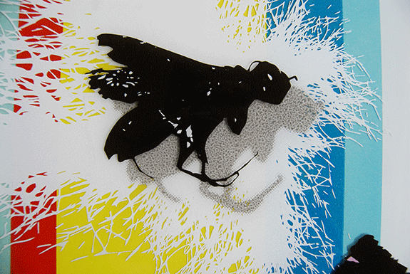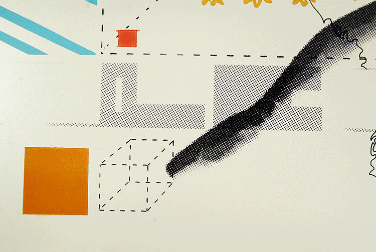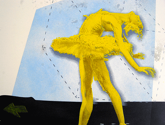 screenprints, spray paint and mixed media