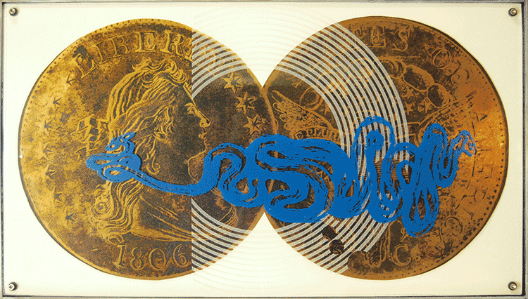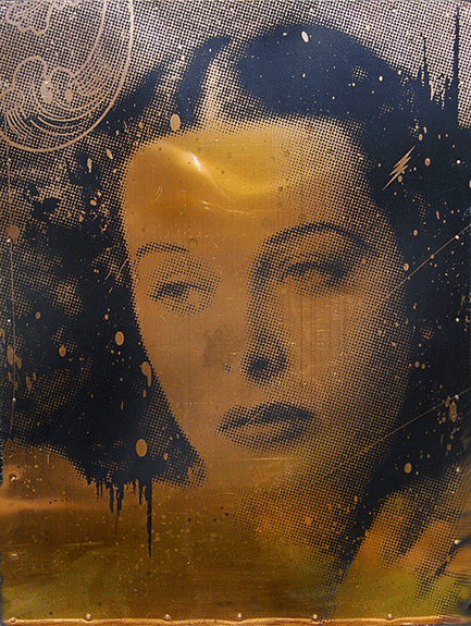 screenprints and spray paint on copper